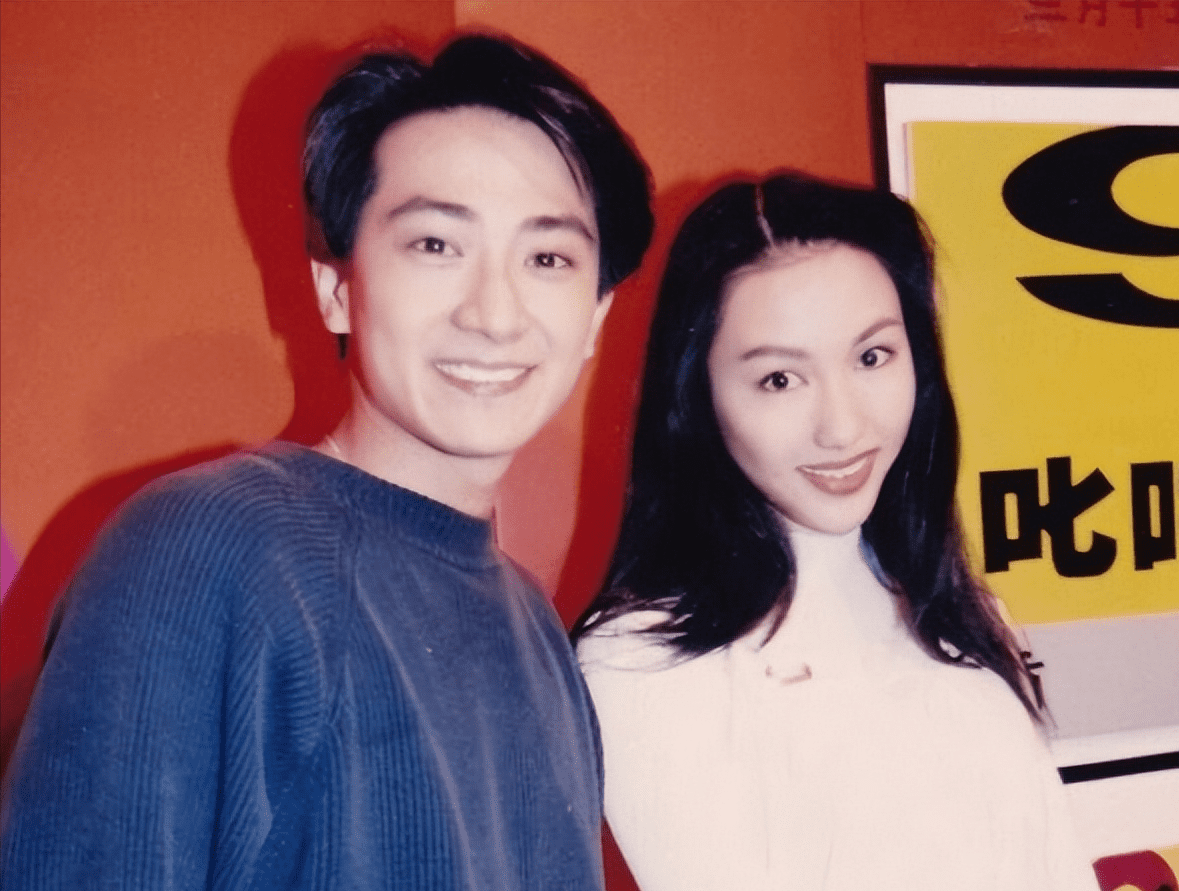 还有他也是香港明星,与TVB红透半边天的黎姿站一起,身高也是非常的搭配,男的帅气,女的甜美。这张图,仔细一看,