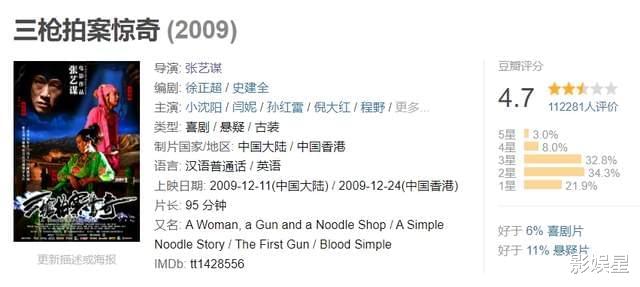 虽然《三枪拍案惊奇》的豆瓣评分仅有4.7分,妥妥的“烂片”,但小星我一直认为这部电影的失败主要是因为它是在影院上映的,偏偏《三枪拍案惊奇》的制作属于典型的“小制作”,倒也难怪当年花大价钱买票进电影院的观众会表示不满了。