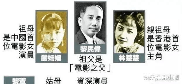黎姿的爷爷是被称为香港电影之父的黎民伟,奶奶是香港第一代电影明星林楚楚。