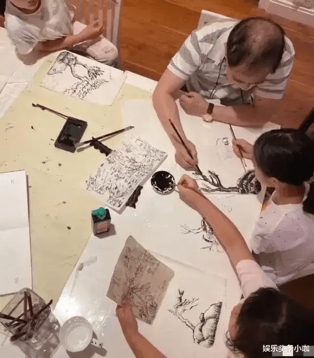 一家人在一起画画,