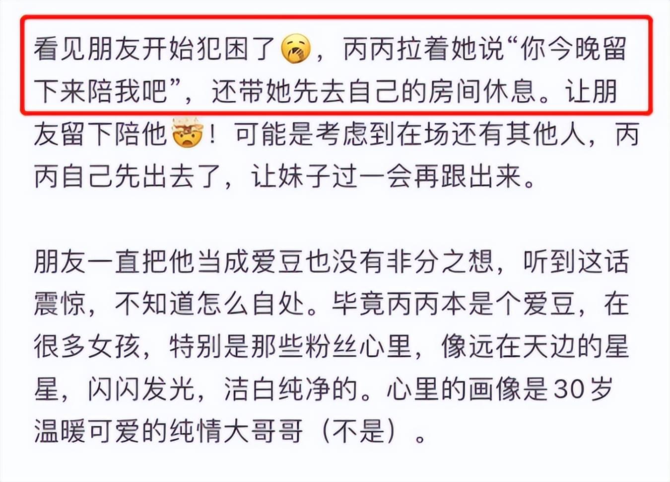但吴亦凡看到她的另一个朋友有点犯困后,就直接上前去问那个朋友“晚上能不能留下来陪他”?