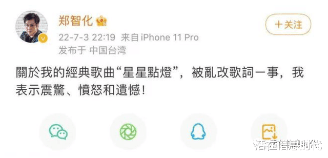 昨天,沉寂了多年的台湾歌手郑智化发了一篇微博,回应自己的原创歌曲《星星点灯》被乱改歌词的事情,对此,他表示震惊、愤怒和遗憾。