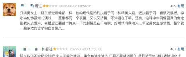 收视率平平,豆瓣评分低至4.2,观众将主要槽点都集中在靳东身上,这次他在剧中饰演的依旧是一个事业有成的中年精英男,一如当年《我的前半生》里的贺涵。