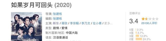 2020年,由靳东、蒋欣主演的《如果岁月可回头》,口碑更是糟糕,评分竟然只有3.4。“靳东油腻”是观众的统一感受。