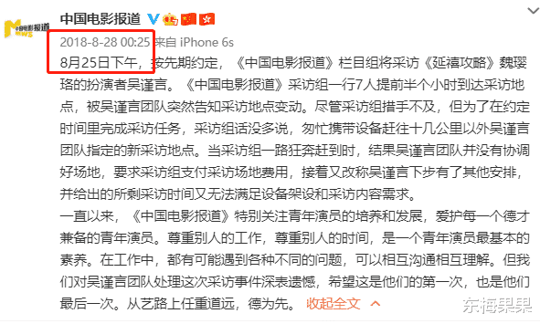 事情得追溯到2018年8月28日,她突然点名吴谨言耍大牌。