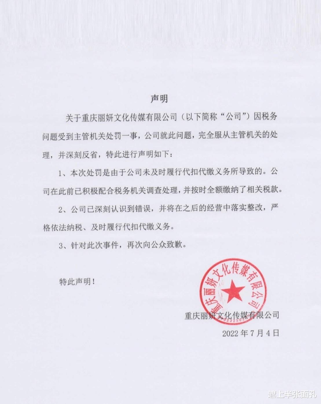袁冰妍是重庆丽妍文化传媒有限公司的直接受益人,也是唯一的大股东,所以看起来虽然乱,但实际上可以把公司和袁冰妍划等号。公司偷漏税,就是袁冰妍偷漏税;公司被罚97万,就是袁冰妍被罚97万。