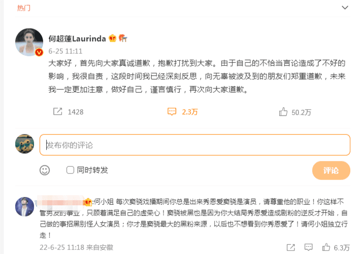 近日,“赌王”女儿何超莲因多个话题陷入了舆论漩涡。首先就是不久前男朋友窦骁与陈都灵主演的电视剧《良辰好景知几何》男女主大婚播出时,恰逢女朋友何超莲的生日,因而当晚只有陈都灵一人卖力发文宣传,窦骁则选择为女朋友发文庆生之余还大秀恩爱,再加上不久前整个剧组直播时,主演里也只有窦骁缺席,引得不少网友都怒批他不够敬业,没有积极宣传作品。而原本窦骁并没有对网友们多加理会,舆论已经逐渐平息,没想到何超莲不甘心男朋友被批评,直接说出了“这剧明明是靠他撑起来”、“他看得开我可看不开”等,更是明里暗里指出陈都灵只注重营销、火不起来等!