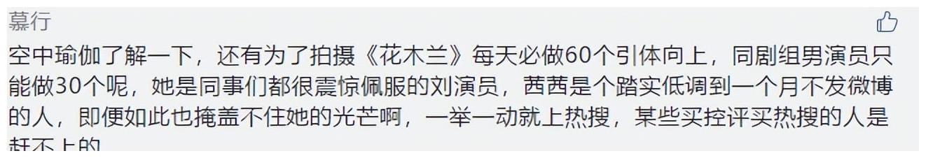 有网友还扒出刘亦菲为了拍摄花木兰每天必做60个引体向上