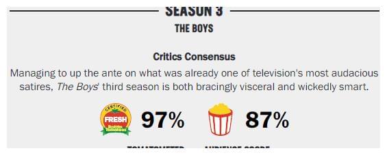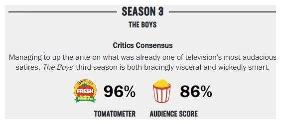 除了各种对当下的超级英雄作品和超英现象揶揄与冷嘲热讽,在第三季的政治讽刺也愈发明显了。《第三季》共有8集,前7集已经播完,接下来每周更新一集。总之,无论是你想看爽到爆的尺度,还是深思剧中所带来的幽默反讽,这部剧都可以满足你!