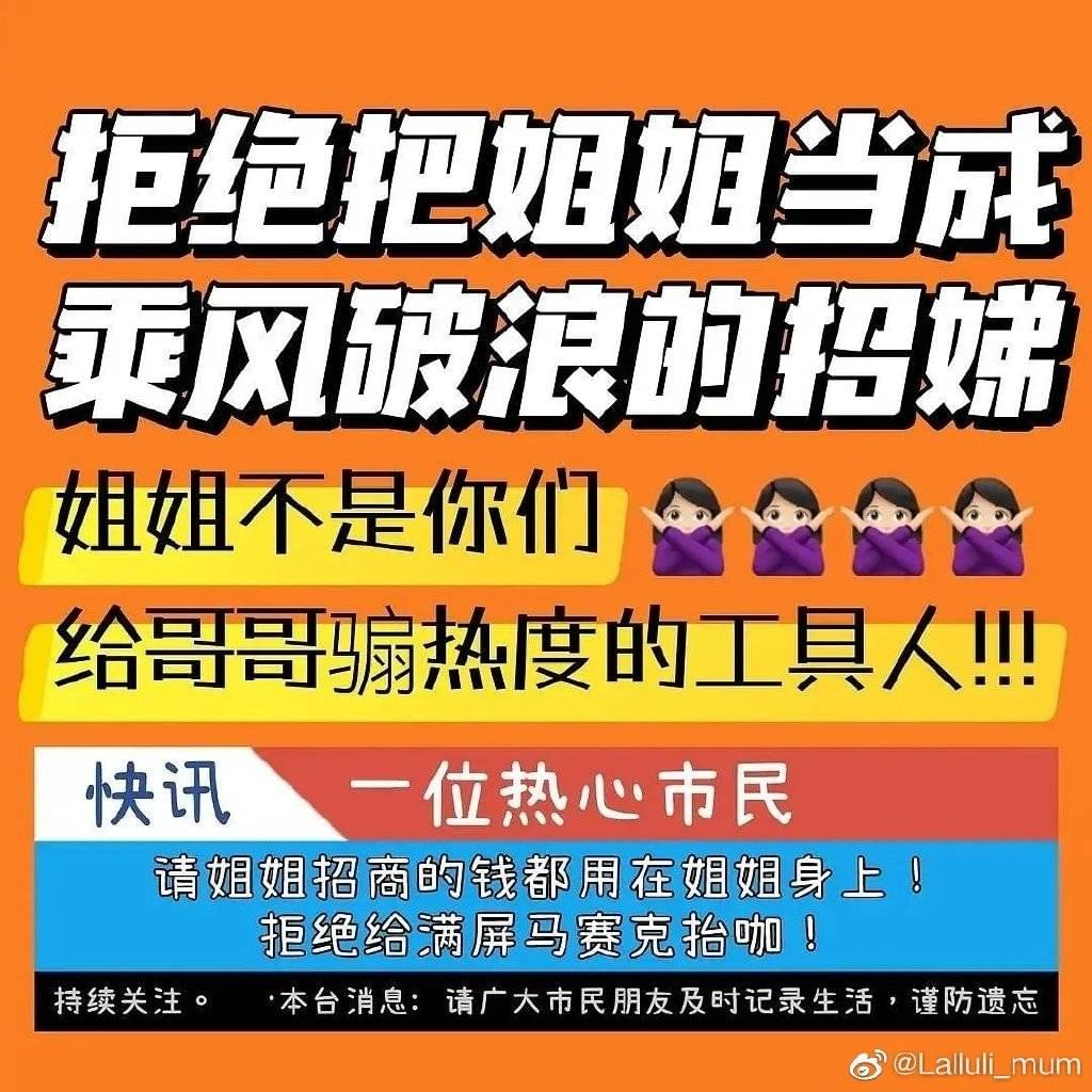 “姐姐不是你们给哥哥骗热度的工具人”。