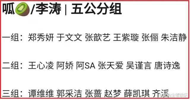 至于五公的淘汰结果,网上目前没有准确的说法,有网友爆料淘汰的是张歆艺、张俪和王紫璇三人,也有人爆料淘汰的是张歆艺和张俪两人。这两个版本的爆料中,张歆艺和张俪都在其中,看来她俩很可能会止步成团夜。