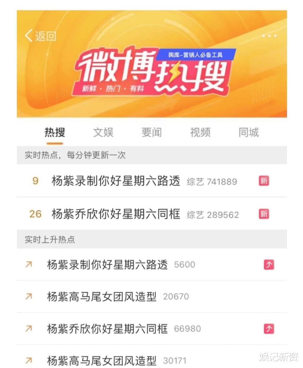 7月4日在湖南广播电视台办公室的文中其中就提到《你好,星期六》第三季还未播出、已经备受全网期待,短短两天的录制过程收获全网热搜超20个,而从晒出的热搜可以看出,这几乎都是和杨紫有关的热搜。