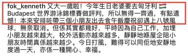 翻看霍启刚的社交平台会发现,近段时间他一直都在忙工作,几乎每条动态都和工作相关,难得抽出时间来和孩子们一起过生日。
