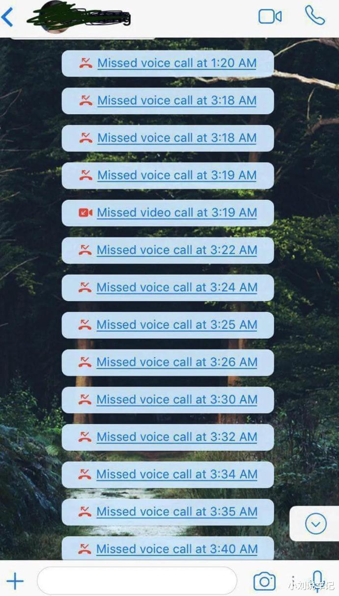 三更半夜,这个前男友在凌晨1点20分打了个语音电话,lena没接到。随后从3点18分开始一直到3点40分,电话隔几分钟打一次。