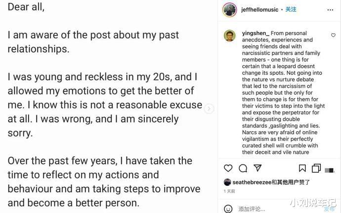 而就在lena晒图曝光自己前男友之后,Jeff,这个6月才火起来,现在就被爆料的街头艺人/网红,道!歉!了!
