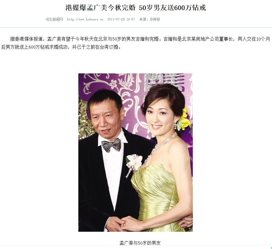 吉增和比她大7岁,是北京世贸天阶董事长、奥中置地董事长。他不仅有钱,出手也相当阔绰,单是一个求婚钻就是600万。