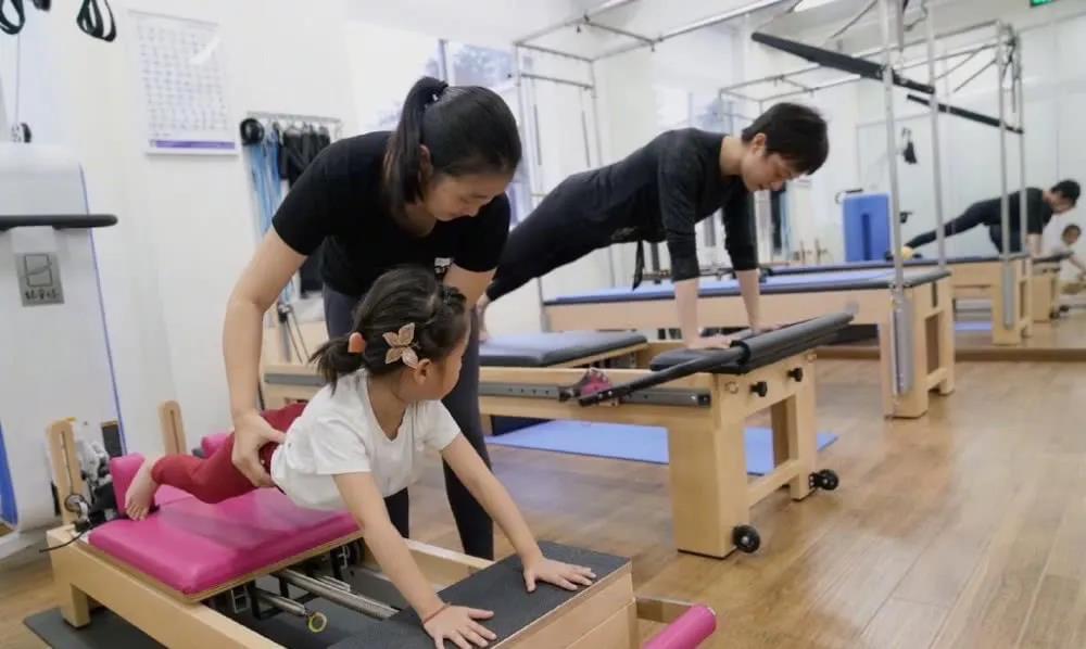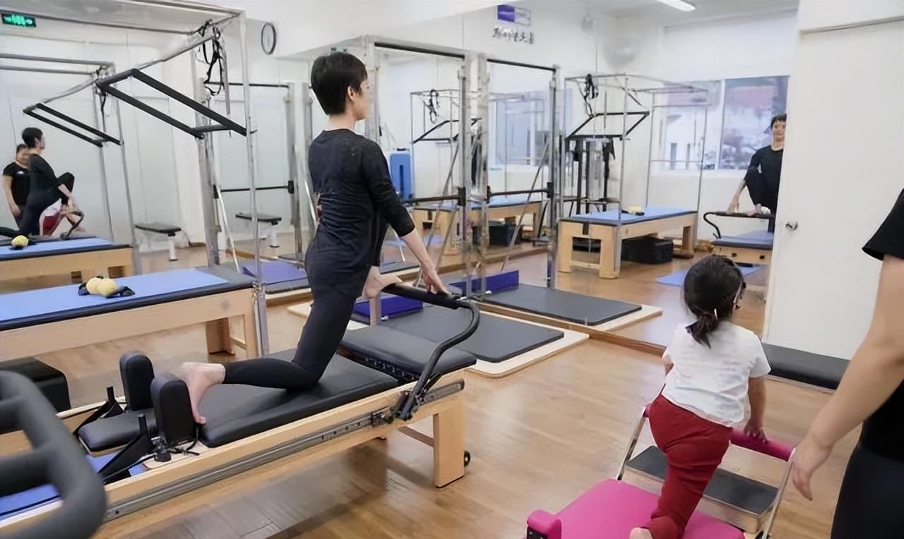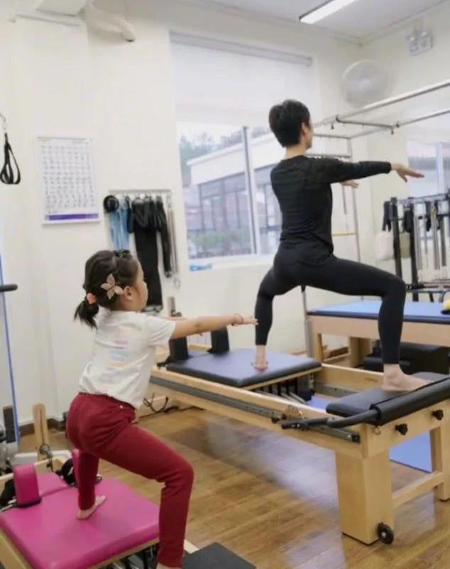 女儿小花从小就跟着妈妈一起锻炼,在教练的帮助下,五岁的小花学着妈妈把动作做的有模有样。