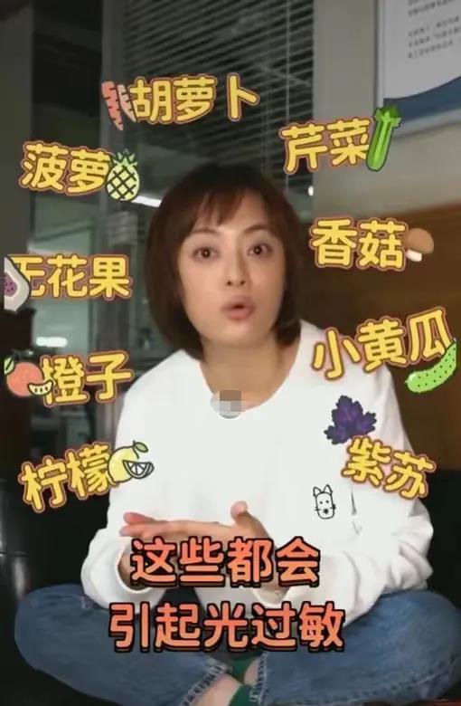 孙俪曾经在一档养生节目里说,柠檬、橙子、香菇、菠萝、胡萝卜、无花果、小黄瓜等食物都会引起光过敏,所以白天出门之前千万不要吃,否则就会引起光过敏。