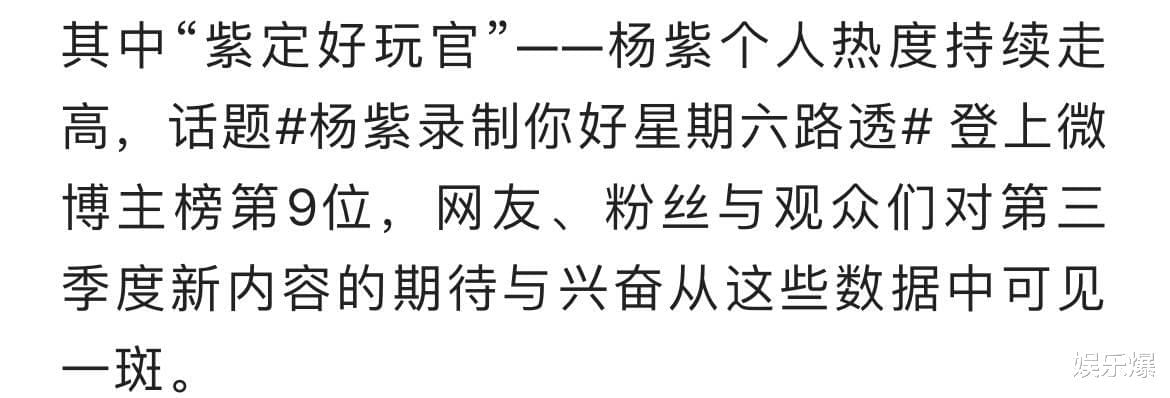 而在爆料中也提到杨紫在这一次的好6团中的身份是“紫定好玩官”,这个名字与杨紫的适配度也是非常高了,之前杨紫录制节目的时候就非常有趣,此次录制《你好星期六》相信也可以给观众带来一些好玩又好笑的场景。