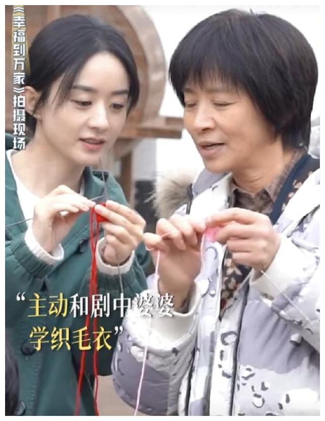 赵丽颖为了能更接地气,还想到了一个好主意。她向剧中自己的“恶婆婆”迟蓬学习织毛衣,一针一线学得有模有样。不但获得了迟蓬的肯定,还将“打毛衣”用在实际拍摄当中。