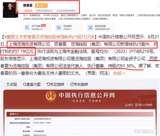 7月4日,从天眼查发现密春雷事件迎来最新进展,成功引起网民关注与热议!从天眼查显示,在密春雷失联162天后,上海览海投资有限公司,密春雷等被强制执行超过7.19亿元。