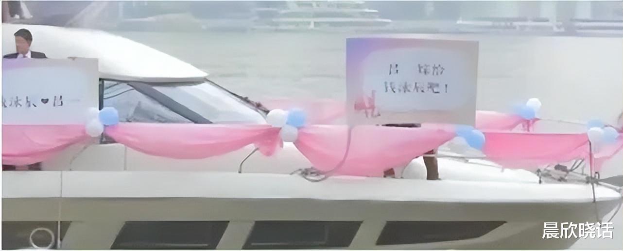 他先把自己家的游艇好好地布置了一番,到处悬挂着浪漫的粉色气球和写着肉麻情话的牌子。