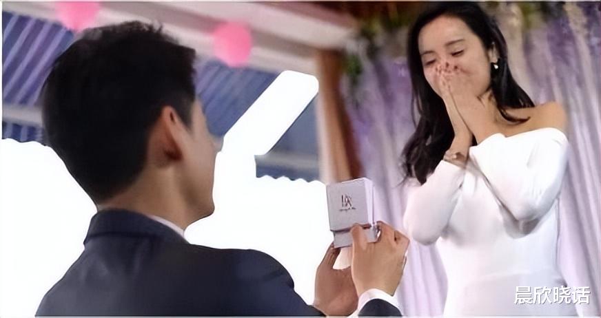 他单膝下跪,拿出了5克拉的钻石婚戒向吕一求婚。