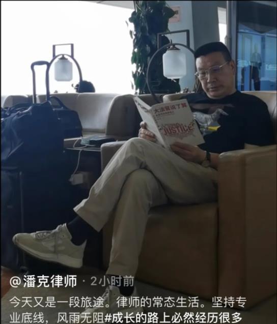 潘克律师更新视频:今天又是一段旅途,律师常态生活,坚持专业底线,风雨无阻,成长的路上必经过很多风雨。浔阳媳妇更新视频:前行的脚步从未停止过,工作是在网络之外,任何纷争不乱于心,任尔东西南北风。不忘初心砥砺前行,生活不辜负每一个努力的人,每个人都在奔赴各自不同的人生。潘律在候机室等候的时候依然在学习《大法官说了算》,寓意深刻。