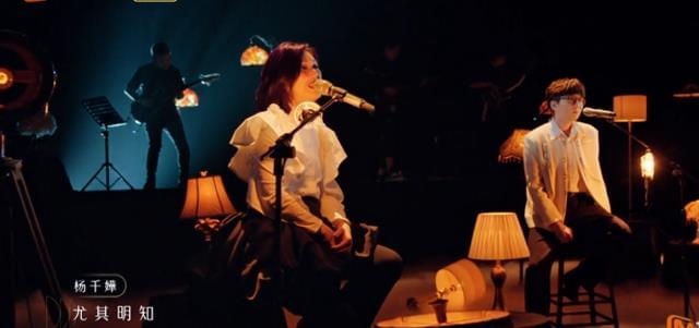忽明忽暗的昏黄灯光中,两位“唱坐”大佬深情合唱《可惜我是水瓶座》。杨千嬅唏嘘开嗓,无奈和忧伤扑面而来,叙事感满满。毛不易轻声低吟,迷人音色自带混响,温柔且感人。