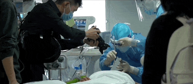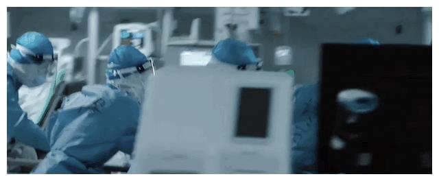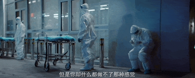 我们甚至可以看到,他们挨个打电话通知家属的全过程,用武汉话说着“蛮抱歉、蛮遗憾”,听着电话那头家属们的哭声。电影银幕上,特写着龚臣的后脑勺,那是他无言的沉默。医生和护士,每天面对死亡,一遍遍重复着自己强烈的无力感,已经是巨大的摧毁;然而,真正让他们更崩溃的是,战友的离开。龚臣的战友,纪永亮医生在救治疫情病患的过程中,感染了新冠。病情极速恶化,第一次靠插管稳定住了。但第二次,一群人拼尽全力,却也无力改变心率监测逐渐从波动变成一条直线。在应该宣布死亡的时刻,龚医生依旧不甘心放弃,继续为战友做着心肺复苏。这个场景全程无声,没有人敢打断他,提醒他,一直到他精疲力尽,轻轻说——我按不动了,伙计。