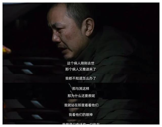他心里真的能过去吗?他自己默默抽了一支烟,回到车上,面对妻子不断质疑:“为什么一天才给你们一个N95口罩”、“别人跟我说,你在插管时面罩被病患喷溅的血液和唾液污染了,这些事你从来不跟我说”,不想妻子担心,因此屡屡回避问题,但最后还是难免地与妻子激烈地争吵起来。