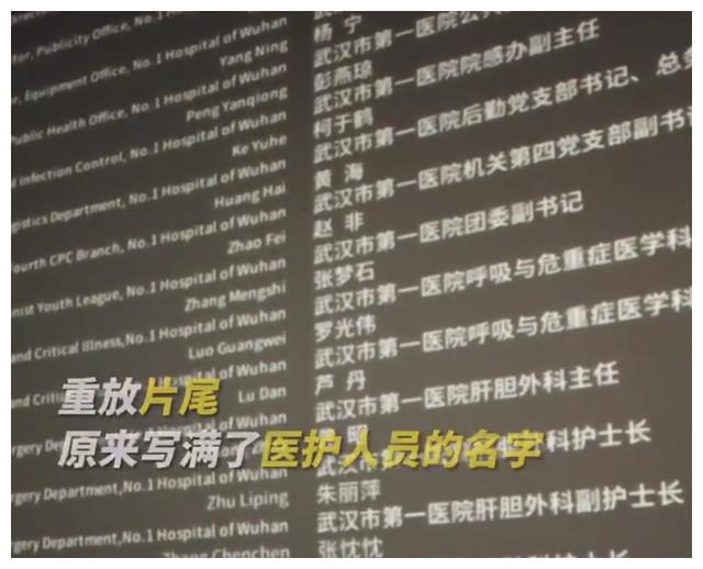 电影还特别在片尾为我们,为那群用生命在救命的人们准备了一个诚意满满的小彩蛋:满屏的曾经在一线守护过我们的医护人员名字。这些名字,不管时隔多久,都值得被记住。