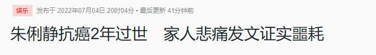 7月4日,娱乐圈再度传来噩耗,中国台湾知名歌手朱俐静患乳腺癌去世,年仅40岁,她的家人在社交平台上发文证实了这一噩耗,受到网友关注。