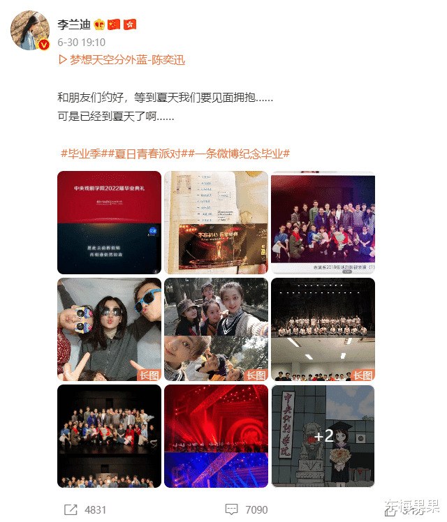 前几天看到李兰迪在社交平台晒自己的毕业plog,惊觉这群00年左右,印象里还是小朋友的明星们,这就大学毕业了。