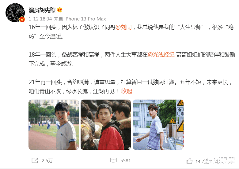 (《人世间》胡连馨饰冯玥)有角色都算好的,目前的行业现状是大公司难进,绝大部分签约的还是偏小型的公司,在不知名网剧里打转,资源多少有点虐。这么看胡先煦还是蛮勇的。年初跟光线的合约到期,果断放弃这棵大树,不续约。还不是另签公司,而是靠着这些年攒下的东西,自己闯江湖(和吴磊的共同点再+1)。那,就浅浅期待下单打独斗的演员胡先煦吧。