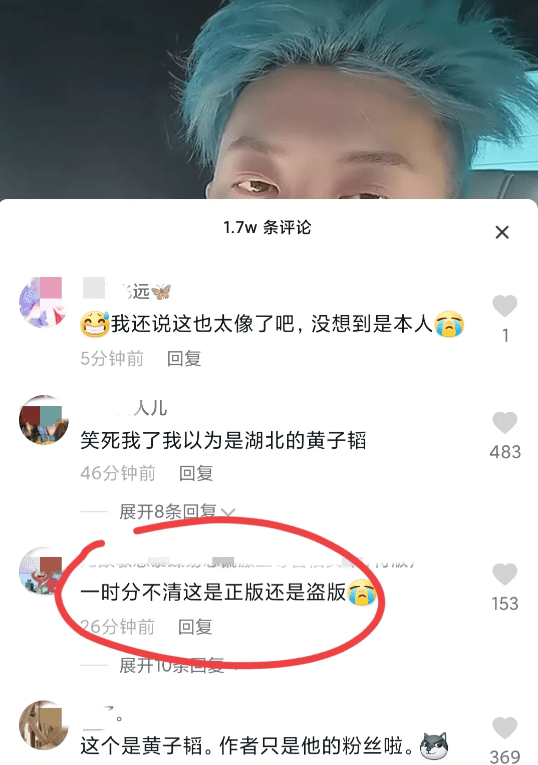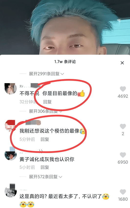 然而,当湖北的这位粉丝把黄子韬的视频发布之后,网友们全都误以为他也是模仿的,评论区清一色地认为,他是模仿得最像的一位!