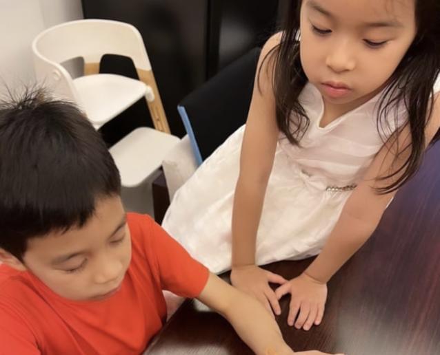 因为母亲不在香港,所以三个子女就陪着父亲一起过生日。霍启刚也是在网上晒出了子女送给自己的手绘卡片跟他们做菜的样子。其中郭晶晶的二女儿霍中妍正面照是正式曝光了,今年5岁的她跟着哥哥一起做薯条,非常乖巧,而且5岁的她穿搭就非常时尚。