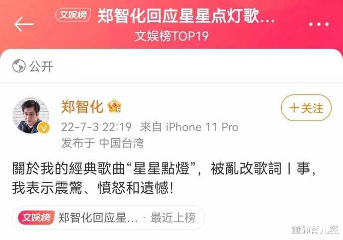 至于郑智化为何会如此大发雷霆,原因则是在最近热播的《浪姐三》三公舞台中,王心凌组对经典歌曲《星星点灯》里的某句歌词做出改变,从而引发全网争议。
