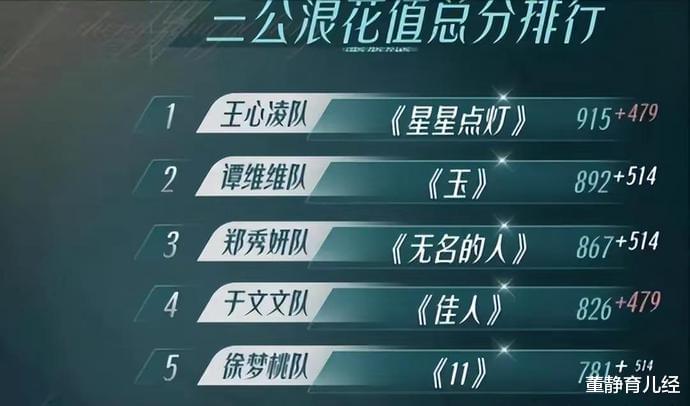 外加王心凌和twins两大人气选手的热度加持,使得这首《星星点灯》在三公舞台中以915票的高分强势夺得第一名。
