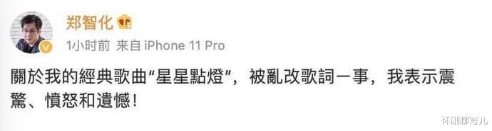 7月3日,郑智化发文回应自己的歌曲《星星点灯》被乱改歌词,他表示:震惊、愤怒和遗憾。