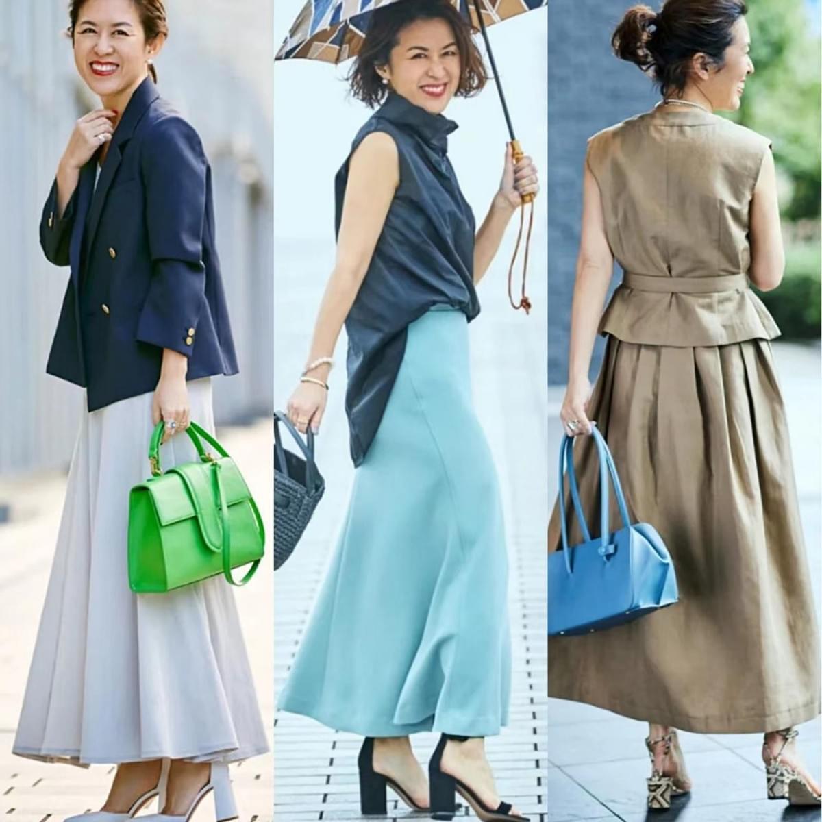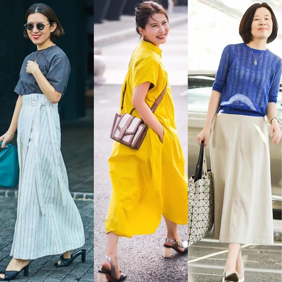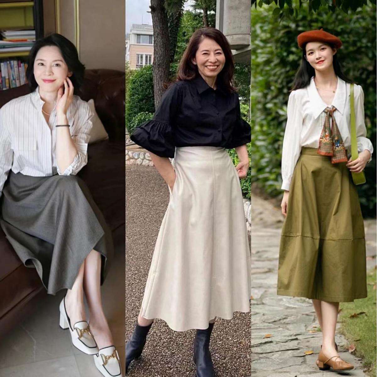 半身长裙款式不宜花哨,以黑白灰、卡其色、淡彩色系为主的纯色款,或者波点裙、格纹裙更简约得体。