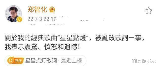 但其实从客观来说,我们也要尊重原创,更改歌词确实需要征得原创作者的同意,如今既然郑智化已经亲自发文怒斥,希望他们能够早日给出回应,给郑智化老师和观众一个说法,对此你怎么看,欢迎在下方留言评论。