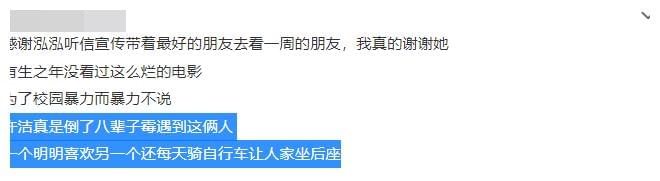 这里,没有直言,不过听起来就是在吐槽电影里的主爱情线……非但没打动她,还给了她不大好的观感。提及嗑点,都是说硬嗑的台词