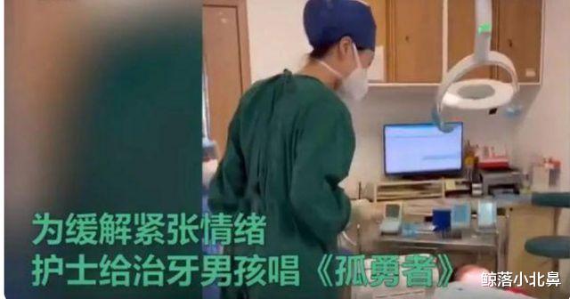 如今,《孤勇者》在小学生群体中传播度这么高,也有了其他的用途。有护士要给学生治牙,为了缓解男孩的紧张情绪,现场为小男孩唱起了《孤勇者》,效果果然立竿见影,顺利为小男孩治疗的牙齿。