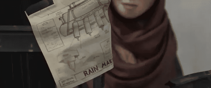 浓郁的反乌托邦式风格,短短的影片却带给人宏大的震撼,由点及面,放大的人性在末日下一览无余。弱小但怀揣希望的造雨者代表着与自然的和谐共生,而掠夺者代表着贪婪的一味获取资源,在水源降临干涸的世界时,灯塔和小女孩代表着希望,而造雨装置图即是传承和人性的启迪。