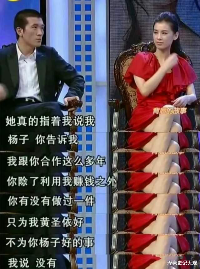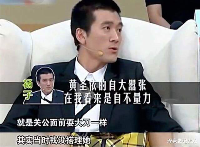 被杨子在采访中说没文化,出身于知识分子家庭的黄圣依却不反驳;杨子说自己的话就是命令,是太阳系核心时,黄圣依低头不语。