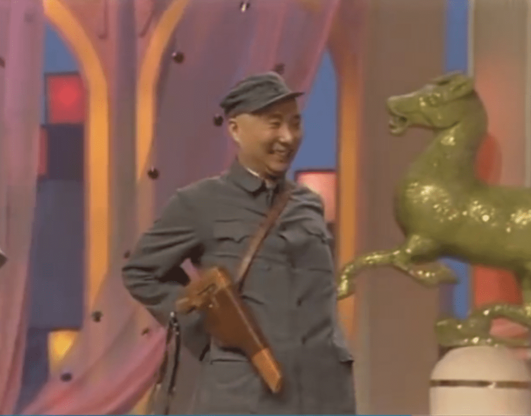不过,由于时间问题,道具并未修理好,所以朱时茂一直在用手拿着枪套进行表演