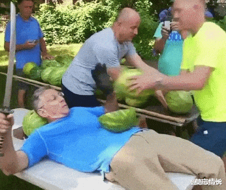 爷,你这样砍西瓜,我都怕你力度过大砍到自己