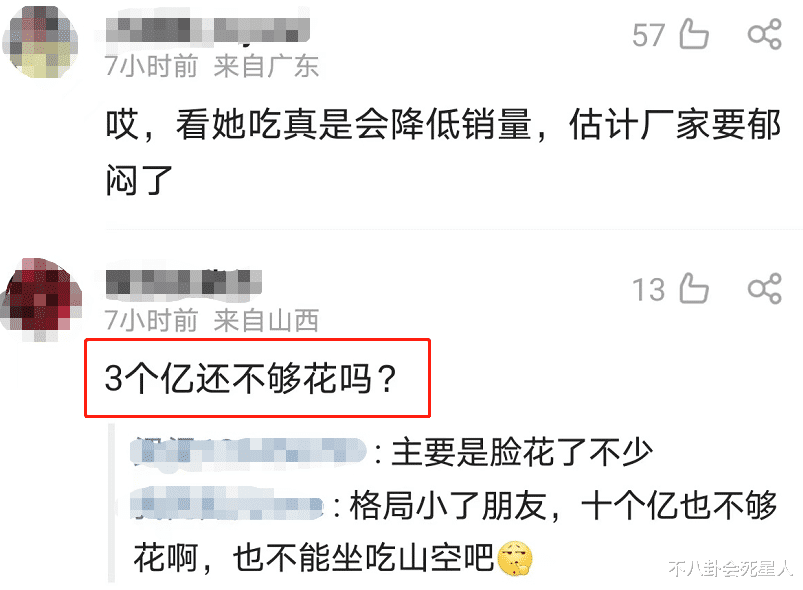 还有网友对她的行为表示质疑“3个亿还不够花吗?”