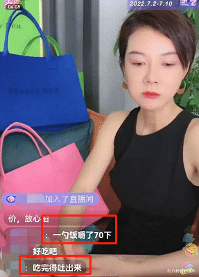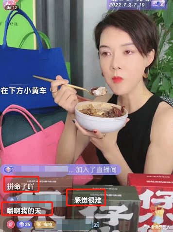 这么勉强的带货,网友们当然不买账了,直接发弹幕吐槽车晓“一口饭嚼70下”“吃完得吐出来”
